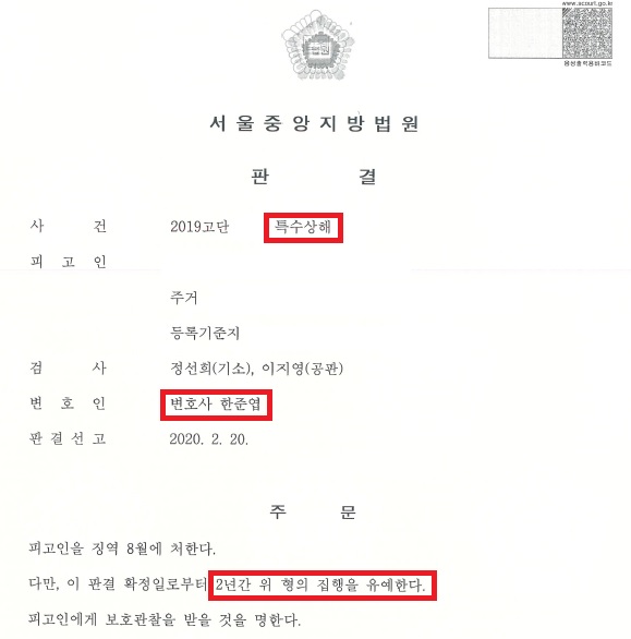 재판부에서는 피해자의 합의와 의뢰인의 반성적인 태도와 더불어 변호사들이 제출한 자료들을 참작해주어 집행유예를 선고하였습니다.