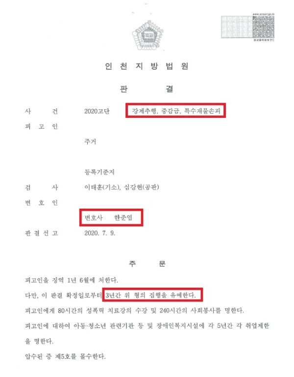 [성범죄] 강제추행, 중감금, 특수재물손괴 - 집행유예 (성추행, 성폭행)