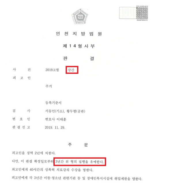 [성범죄] 강간 - 집행유예 (성폭행)