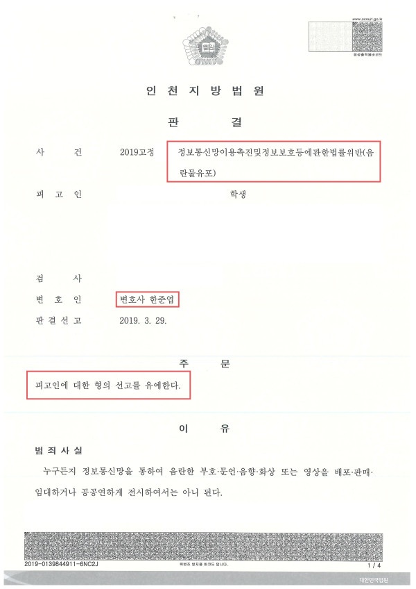 [성범죄] 음란물을 유포(정통망법 위반) - 선고유예 (몰카)