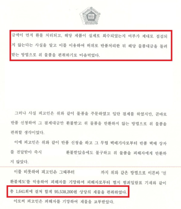 여부가 제대로 확인되지 않는다는 점을 악용하여 총 1,641회에 걸쳐 약 9천만 원어치를