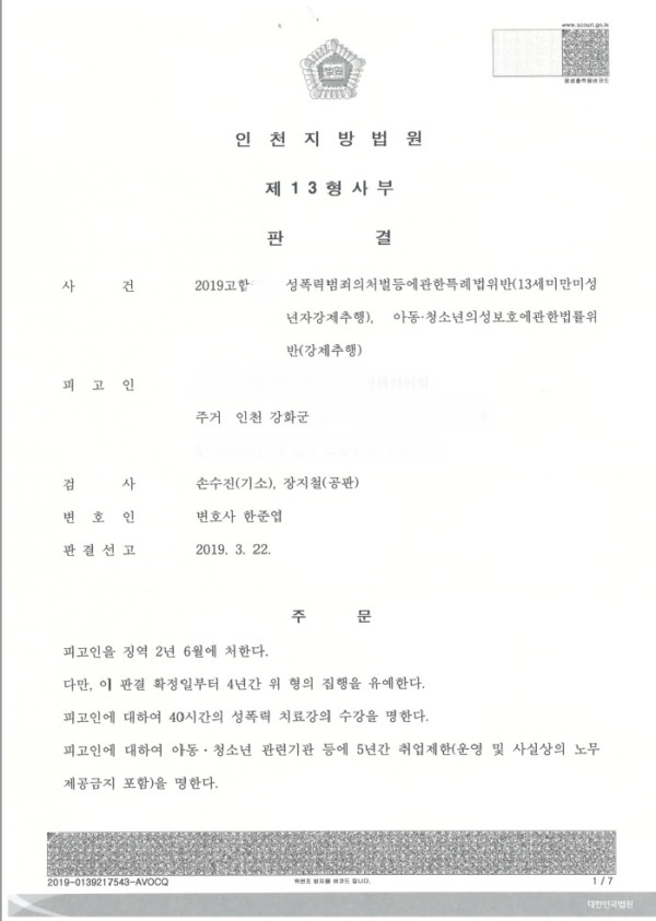 [성범죄] 아청법 위반등-집행유예 선고 (아청법위반, 성추행)