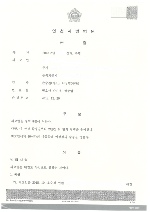 이 사건의 의뢰인은 20대 초반부터 태권도 도장의 사범으로 일해왔습니다. 아이들을 훈육하던 중 폭행이 있었고, 피해자들이 부상을 입게 되어 학부형들이 의뢰인을 상해 및 폭행으로 고소한 사건입니다. 최근 아동범죄에 대한 형량이 높아지는 추세에 있고, 수사기관이나 법원에서도 엄중히 다루고 있으며, 피해자들의 학부형들이 가해자인 의뢰인의 처벌을 탄원하고 있는 상황이기 때문에 쉽지 않은 사건이었습니다.