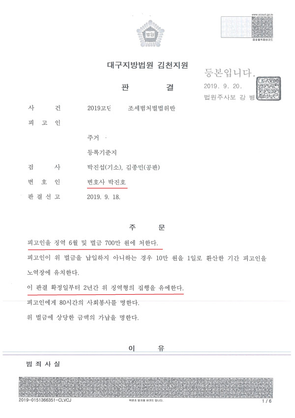 의뢰인이 처음 방문할 당시의 걱정과 달리 집행유예 2년, 벌금 700만 원의 형을 선고 받았습니다.
