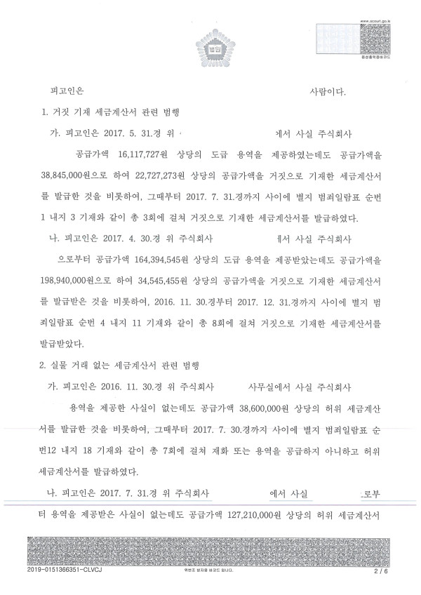 [형사소송] 허위세금계산서 발급(자료상) 사건에서 집행유예를 선고 받은 사례