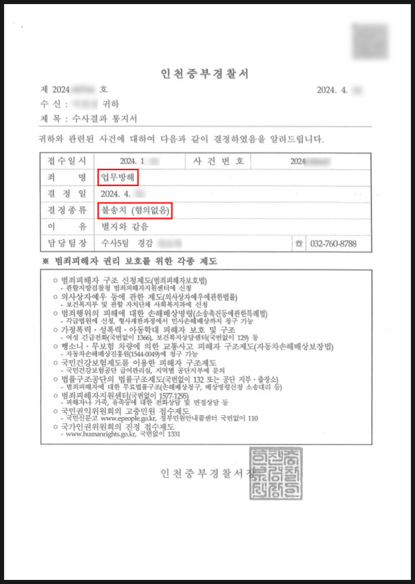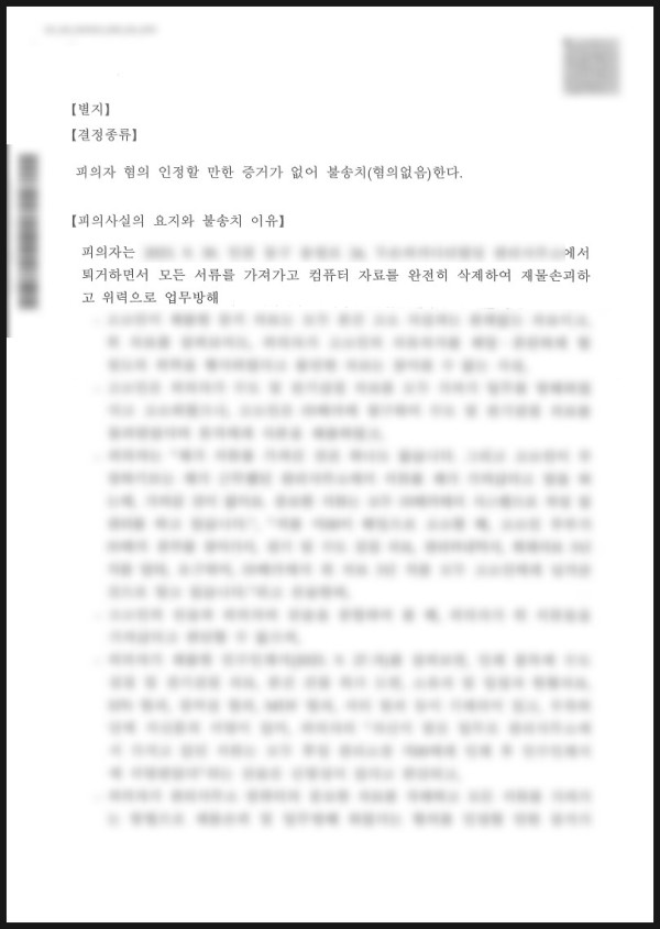[형사소송] 보험사 퇴사 후 재물손괴, 업무방해 - 불송치 승소사례